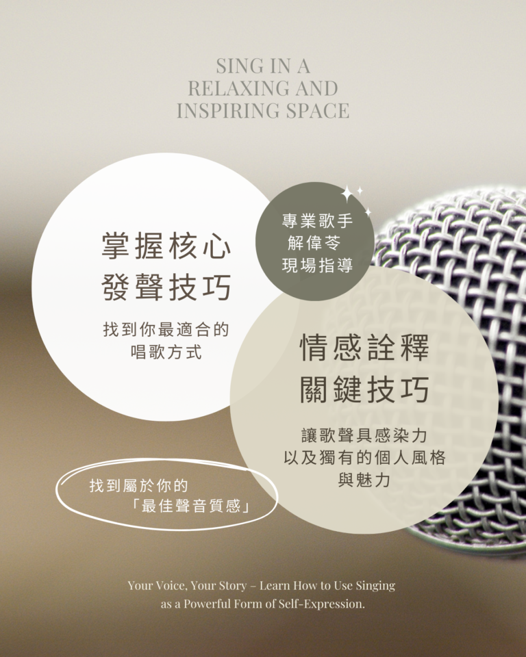 當你認識自己的聲音特質,學會正確運用聲帶與呼吸,歌唱將不再只是片刻的興趣,而會成為你生活的一部分,時刻陪伴著你。